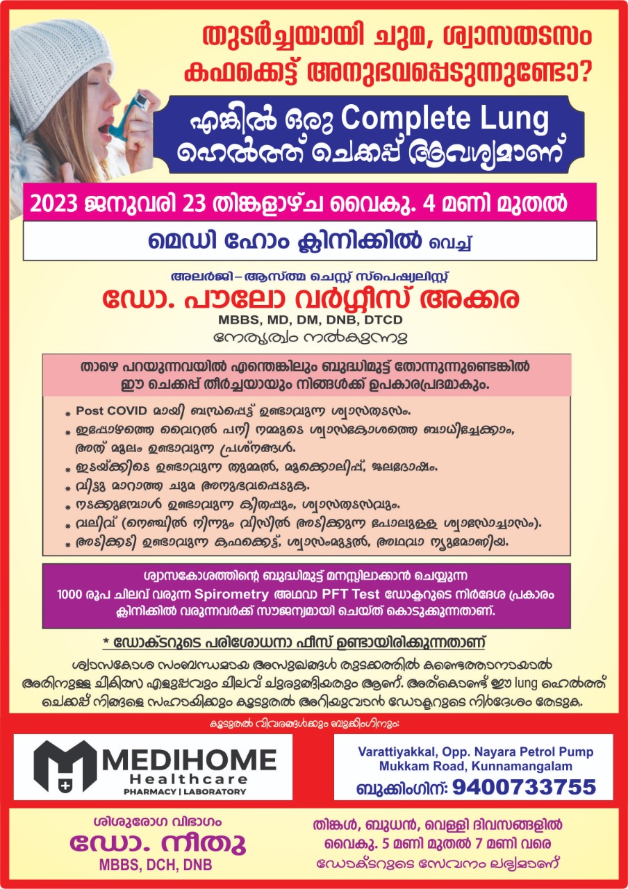(തിങ്കൾ, ബുധൻ, വെള്ളി ദിവസങ്ങളിൽ വൈകുന്നേരം 5 മണി മുതൽ 7 മണി വരെ.)